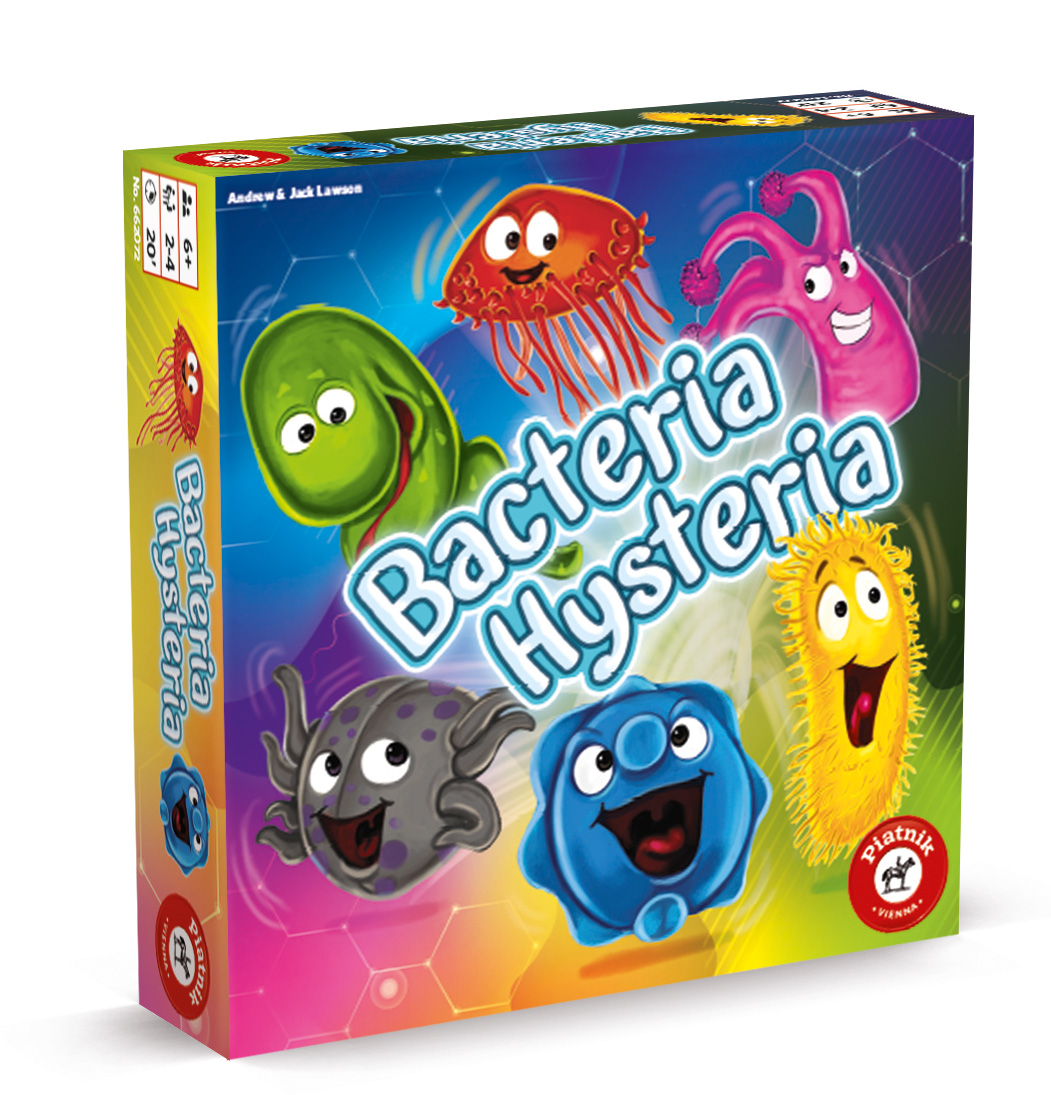 Oh nein, Bazillen so weit das Auge reicht: Halskratzi, Schnupfentierchen, Bauchgrummelo und Co. schwirren direkt vor den Mitspielern herum. Auf den Karten, auf den Würfeln, praktisch überall lauert die Gefahr. Obwohl sie süß und harmlos aussehen, will sie niemand haben. Nur wer gut würfelt und schnell agiert, kann viele der mikroskopisch kleinen Tierchen los werden. Für noch mehr Nervenkitzel sorgt der 40-Sekunden-Timer, der unerbittlich tickt.
